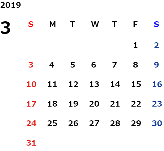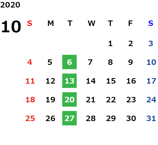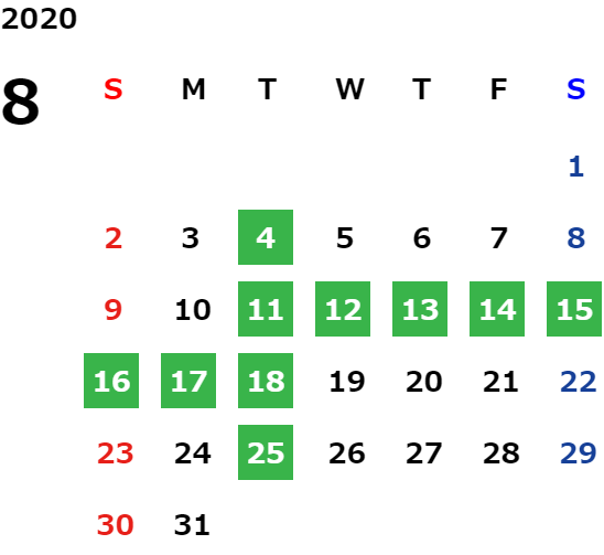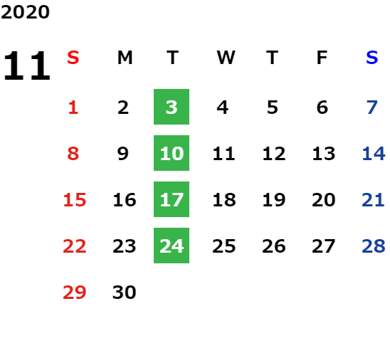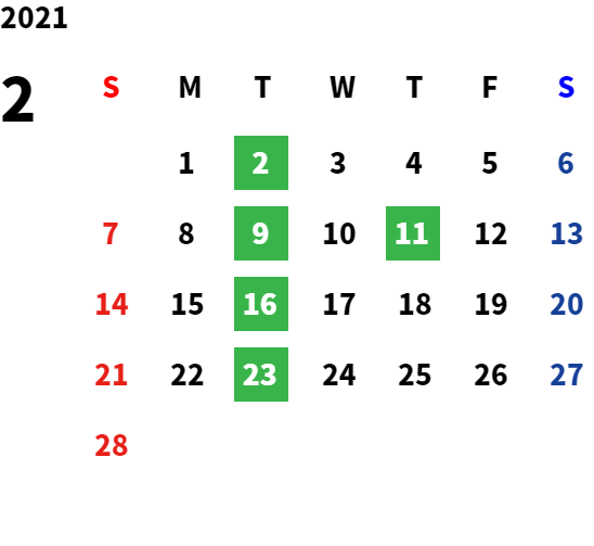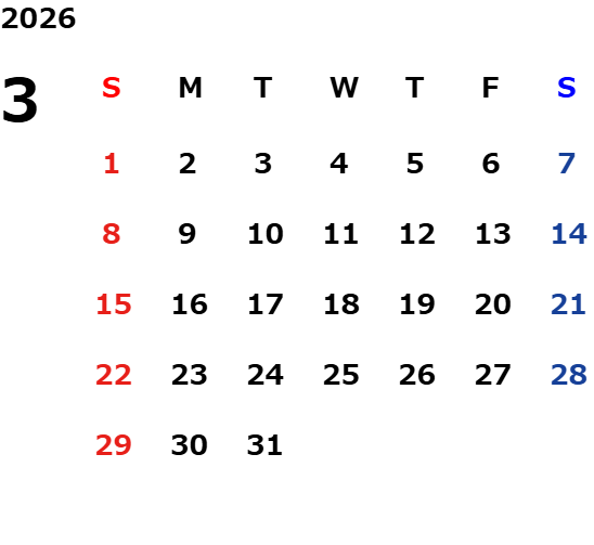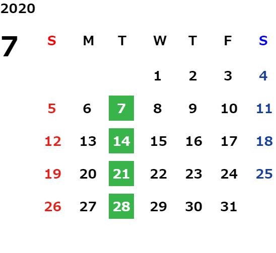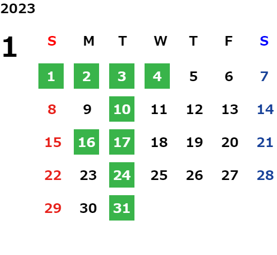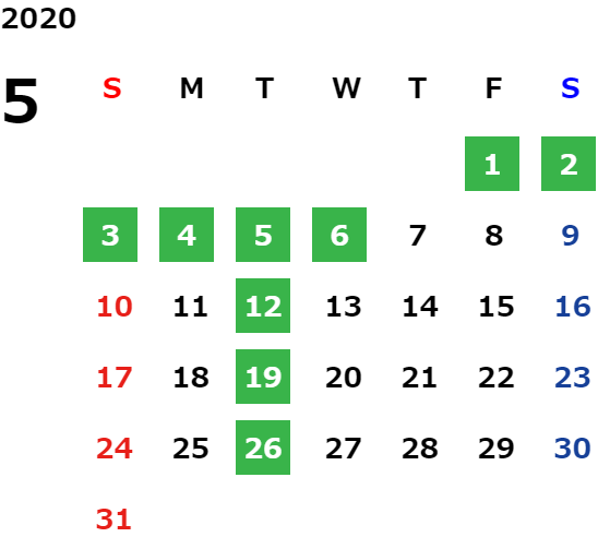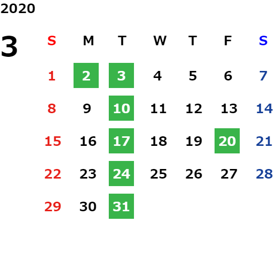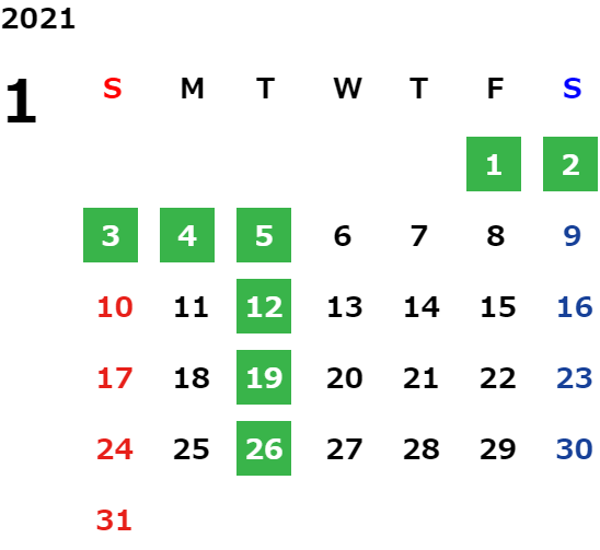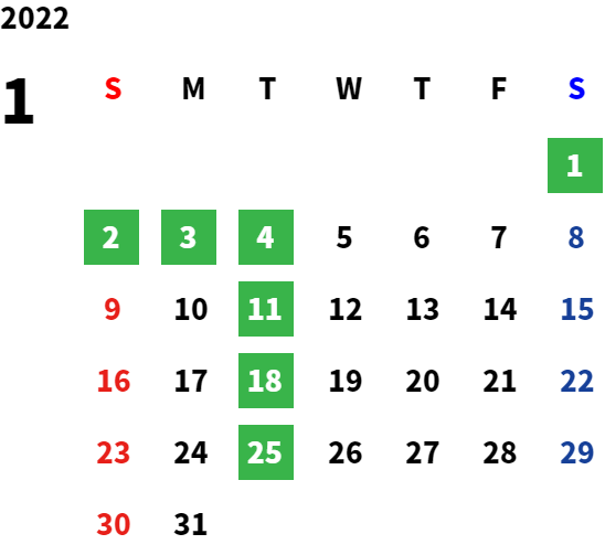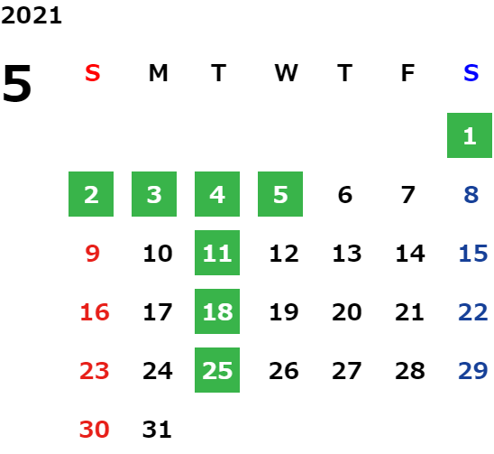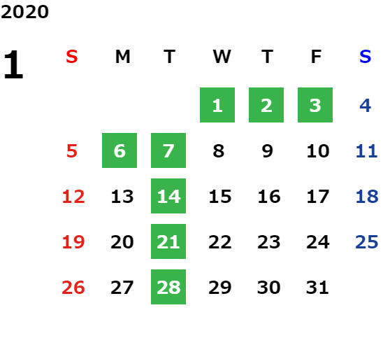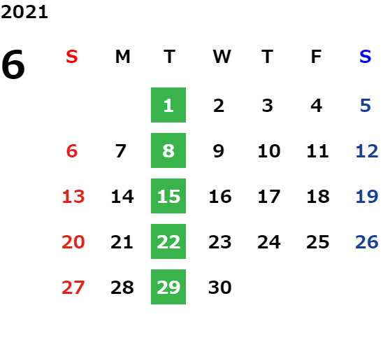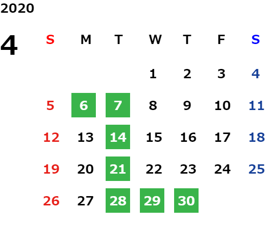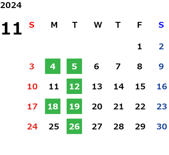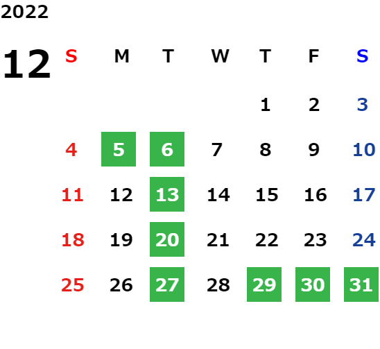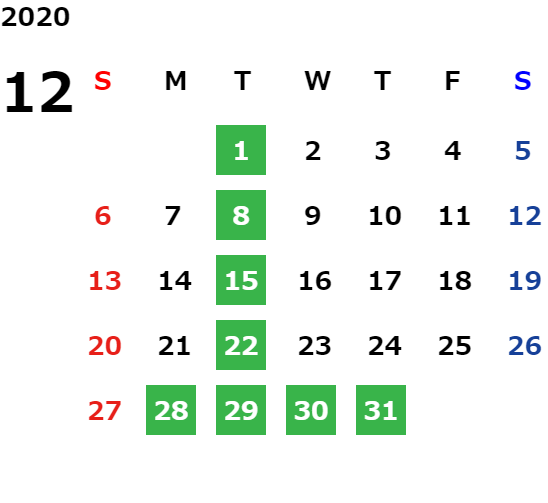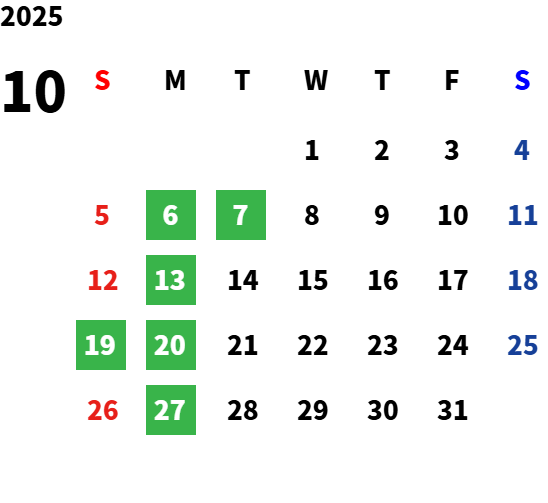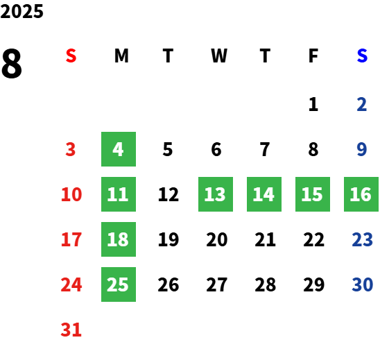 ※毎週月曜日、第一火曜日、第三日曜日が基本的に定休日となります。