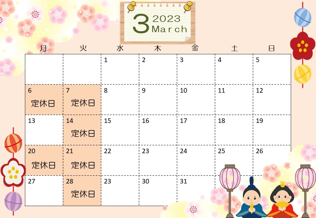 3月 定休日お知らせ