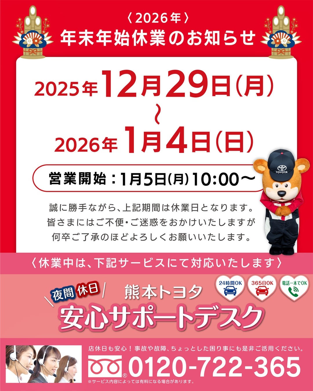 熊本トヨタ夜間・休日安心サポートデスクまでご連絡ください。