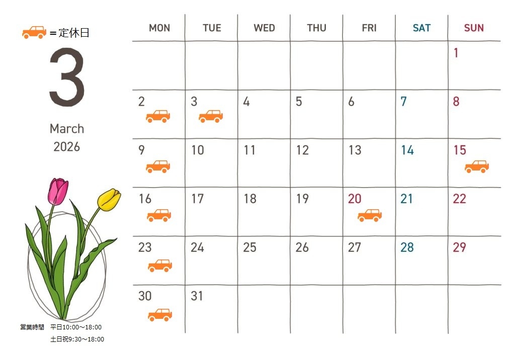 本日は3月の定休日のご案内です✨