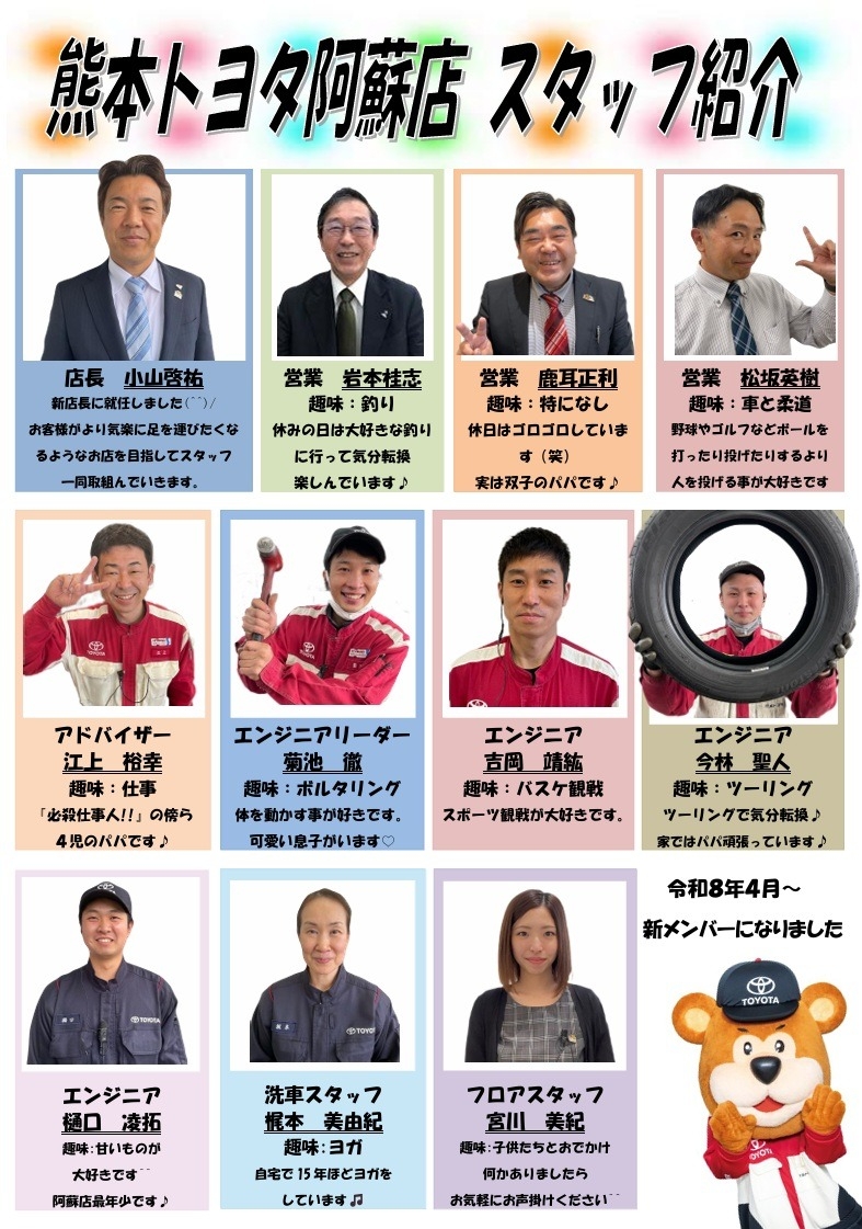 4月1日より阿蘇店に新しく店長含め、